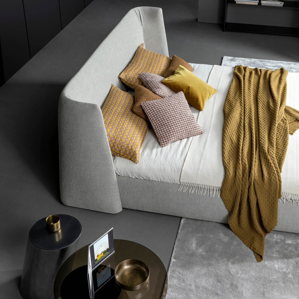 Basket yatak, yumuşak hatlara sahip başlığıyla öne çıkar; kumaş, deri veya suni deri seçeneklerinde tamamen çıkarılabilir kılıfla sunulur. Şık dikiş detaylı Basket Plus modeli ve ek depolama alanı sağlayan “open” versiyonu da mevcuttur.