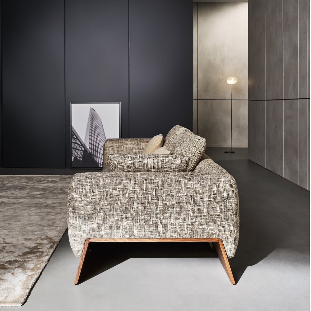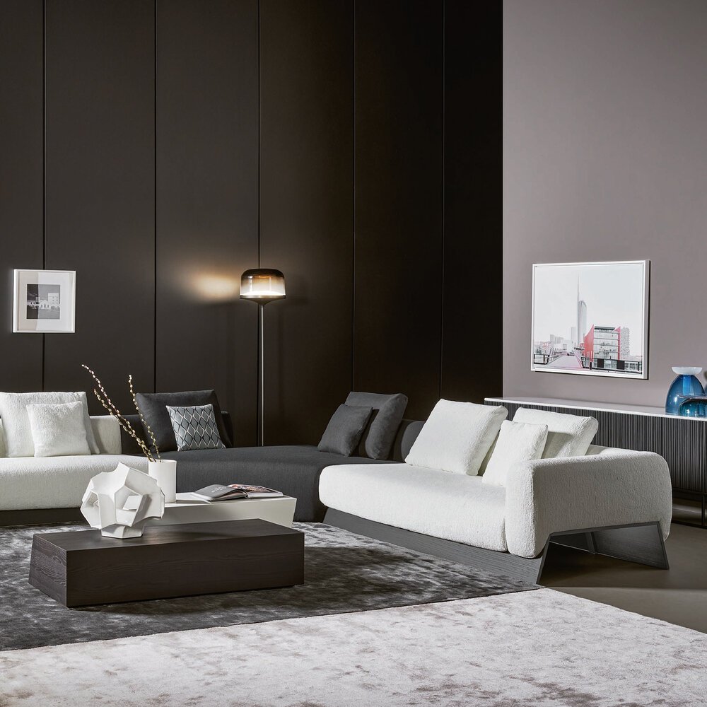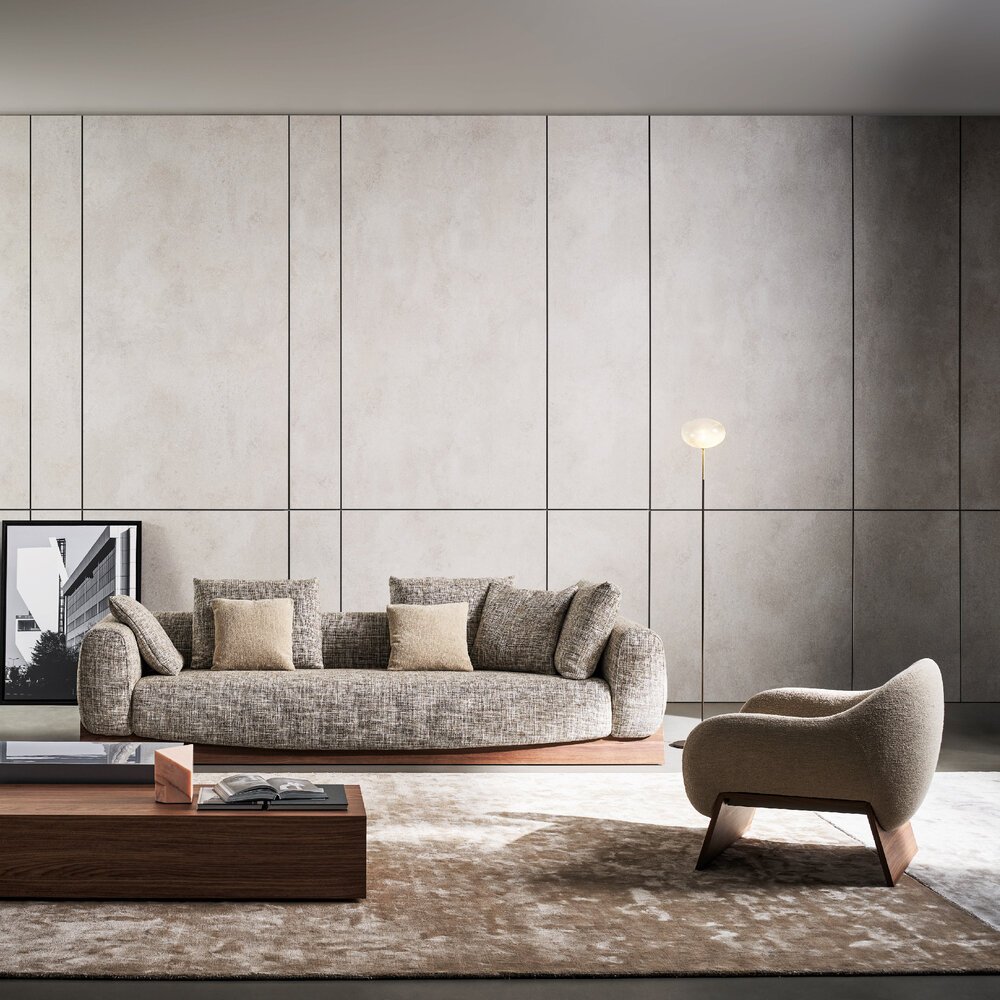 Giuseppe Viganò tasarımı Boolean kanepe, çağdaş yaşamı yumuşak konfor ve net çizgilerin dengesiyle yeniden tanımlıyor. Heykelsi duruşunu vurgulayan köprü formundaki baza, Canaletto ceviz veya kömür meşesi seçenekleriyle sunuluyor; Köşe ve Peninsula versiyonlarında ise döşeme zemine kadar devam ederek bütüncül bir görünüm sağlıyor. İç yapısı metal, elastik kayışlar, ahşap elemanlar ve poliüretan dolgudan oluşurken; karışık kaz tüyü ve polyester fiberden yapılmış minderlerle zenginleştiriliyor. Çıkarılabilir kumaş kılıf pratiklik sağlarken zarafetten ödün vermiyor; böylece Boolean, yalnızca bir kanepe değil, Bonaldo’nun ustalığını ve zamansız tasarım anlayışını yansıtan bir imza parçası haline geliyor.