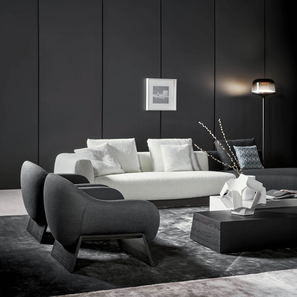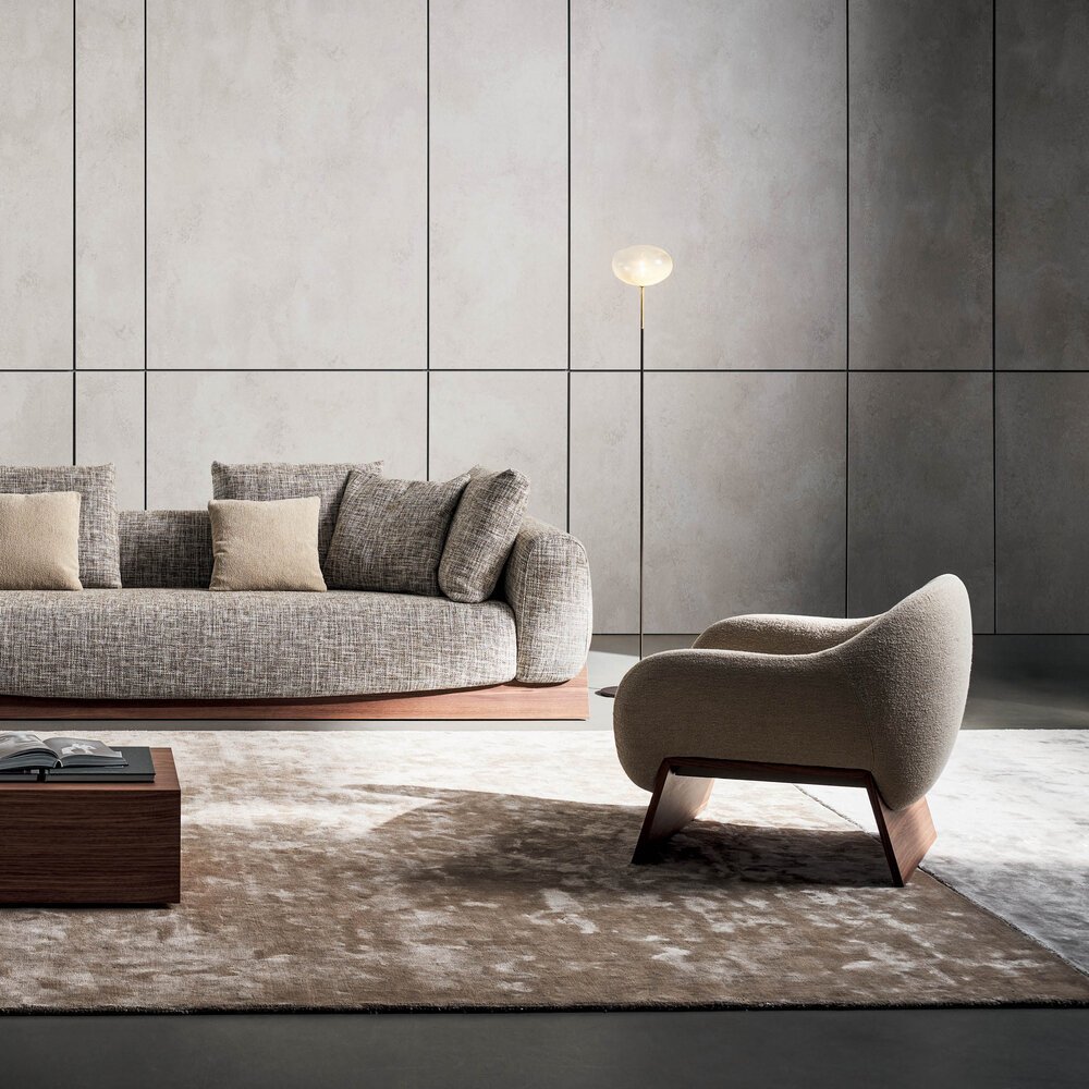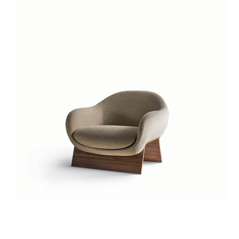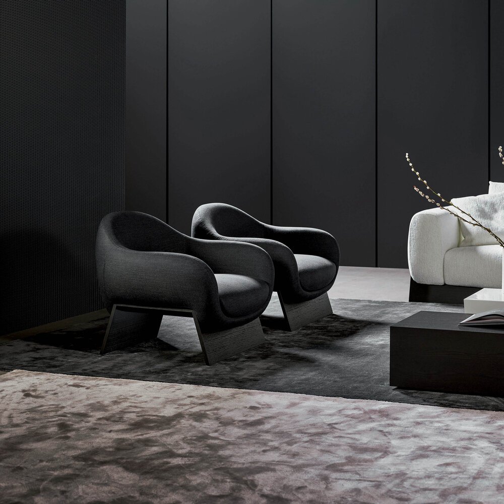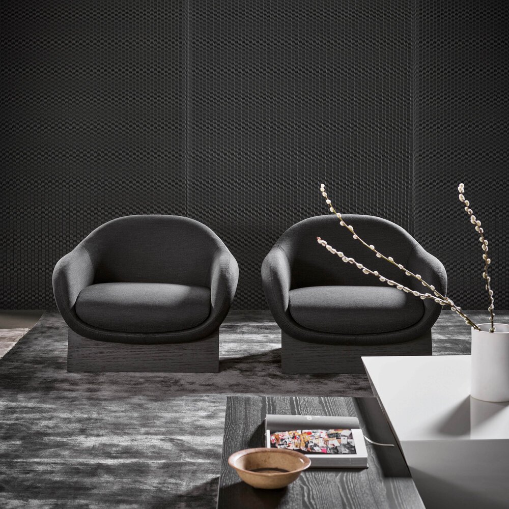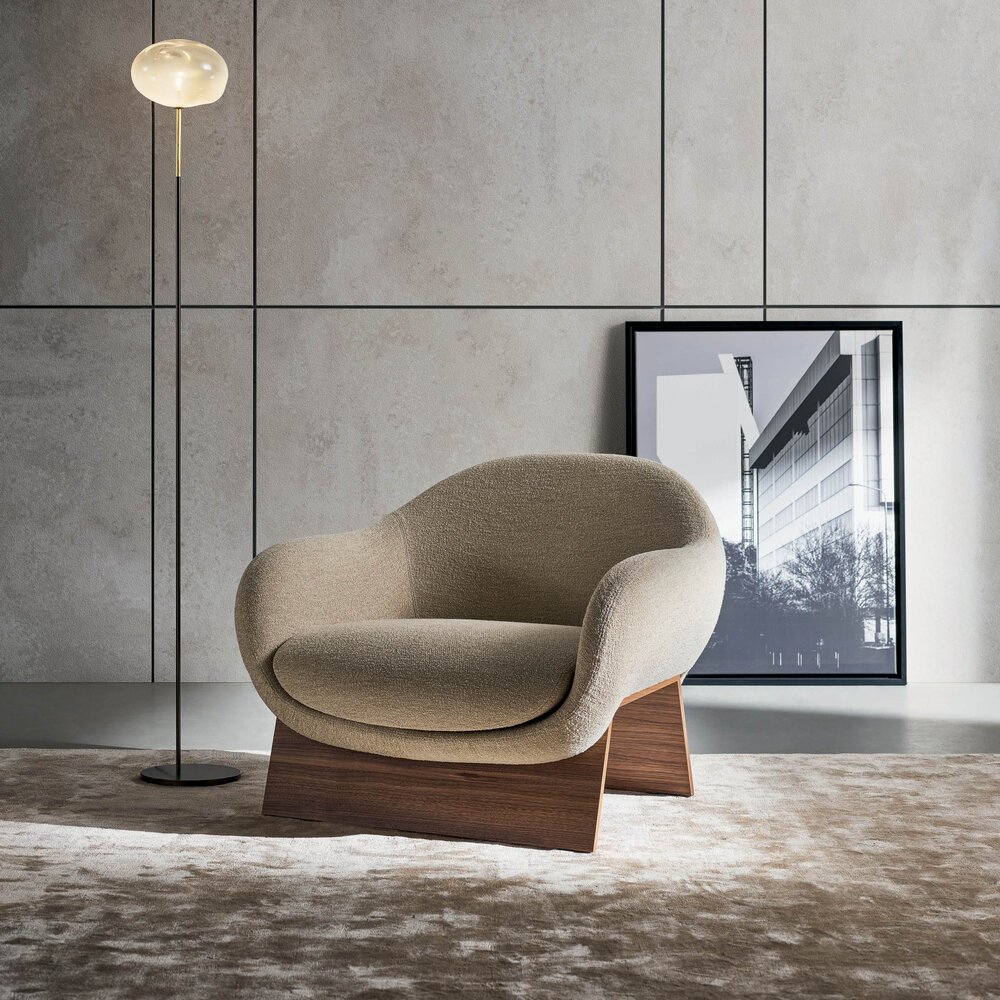 Boolean berjer, aynı isimli kanepeyi tamamlamak üzere tasarlandı ancak tek başına da güçlü bir kimlik sergiliyor. Köprü formundaki tabanı dolu–boş dengesi yaratırken, yumuşak ve kıvrımlı hatları tasarıma zarafet katıyor. Kumaş veya deri döşeme seçenekleriyle sunulan berjerin tabanı ise şık karbon meşe ya da sıcak Canaletto ceviz kaplama olarak tercih edilebiliyor.