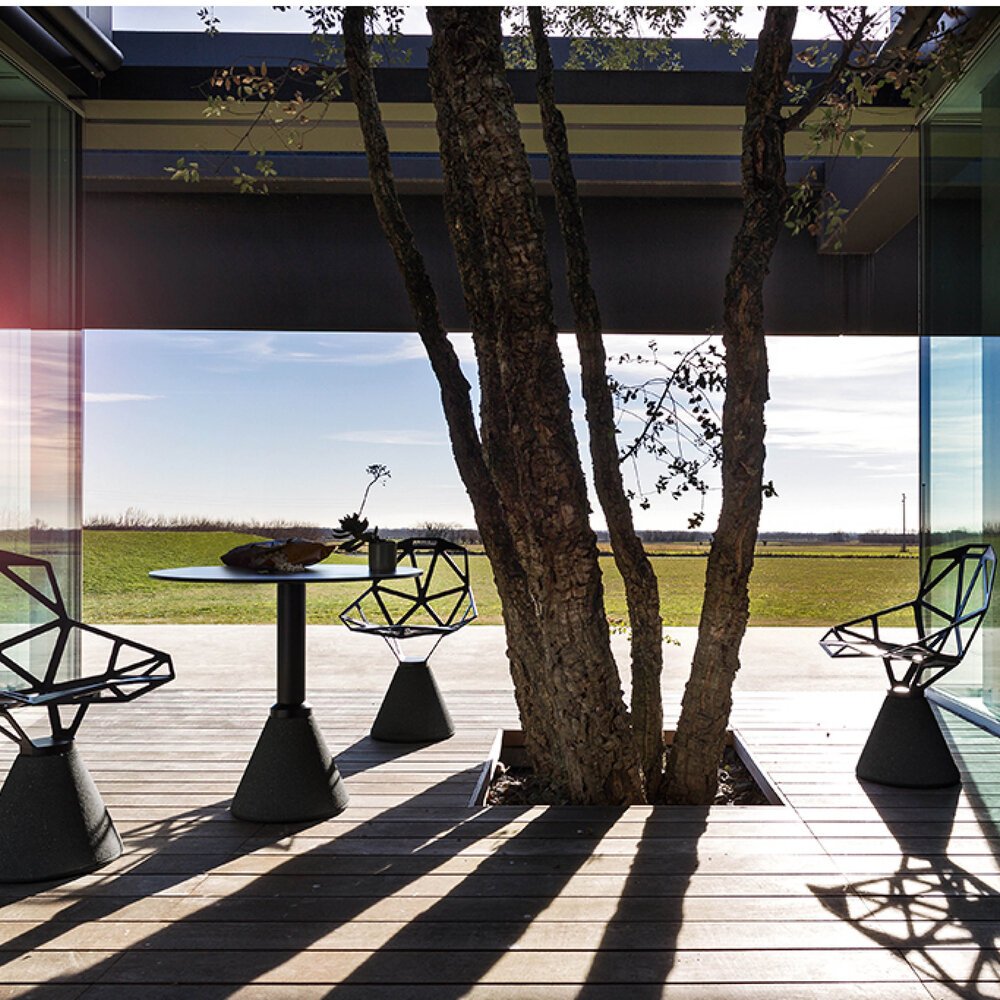 Chair_One, Konstantin Grcic’in Magis için yarattığı yenilikçi bir tasarım ikonudur. Dökme alüminyumdan üretilen geometrik gövdesi, mimari bir yapı hissi verirken güçlü bir görsel denge sunar. Dış mekân kullanımına uygun dayanıklılığıyla kamusal alanlardan modern evlere kadar geniş bir kullanım alanı yaratır.