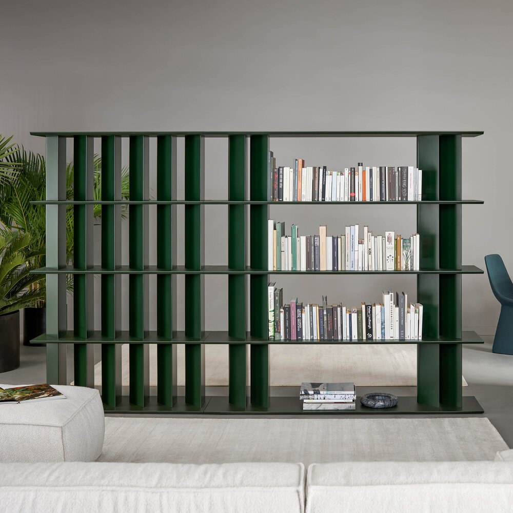 Dogma kitaplık koleksiyonu, formlarla oynayan ve modüller arası kombinasyonlarla farklı görsel etkiler yaratan esnek bir tasarıma sahiptir. Gözleme açısına göre değişen damla formundaki dikmeleri sayesinde tasarım bazen yumuşak, bazen keskin bir görünüm kazanır. Üç farklı modülün özgürce birleşimiyle oluşturulabilen Dogma, ister duvara dayalı ister oda içinde bölücü olarak kullanılabilir. Raflar, metal dikmelerle birlikte Canaletto ceviz, kömür meşe veya tek renk seçenekleriyle sunulur.