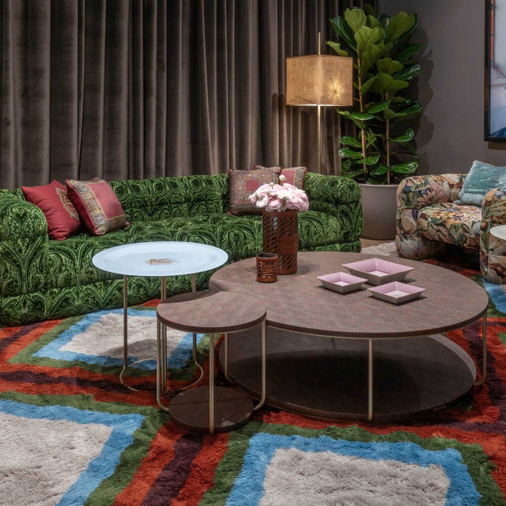 Double, ince metal ayakları ve çift işlevli yüzeyiyle yaşam alanına hafif ama güçlü Etro Home Interiors'ın şık dokusunu getiriyor.