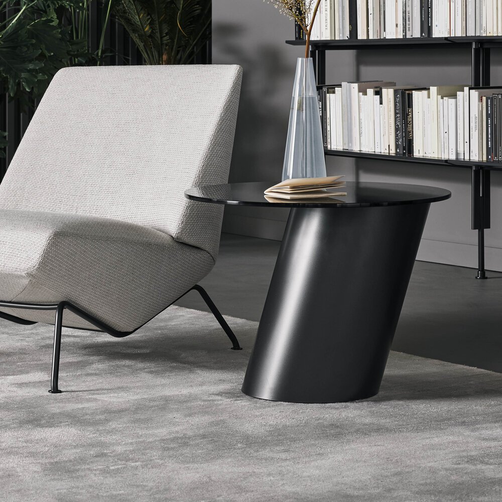 Mauro Lipparini’nin Pisa sehpası, ünlü kuleyi anımsatan eğimli duran formuyla dikkat çeker. Cam, mermer, seramik veya metal yüzey seçenekleriyle her mekâna güçlü bir karakter katar.