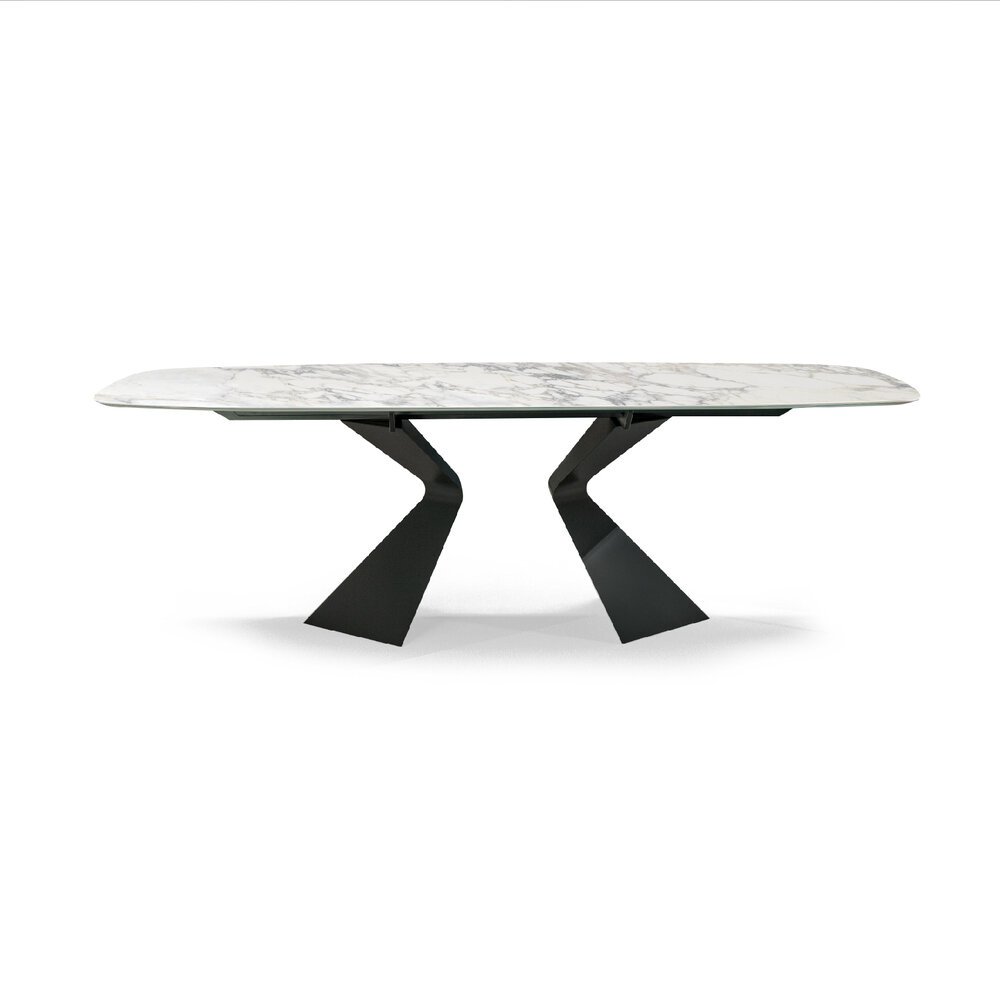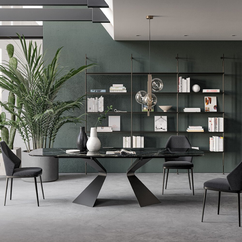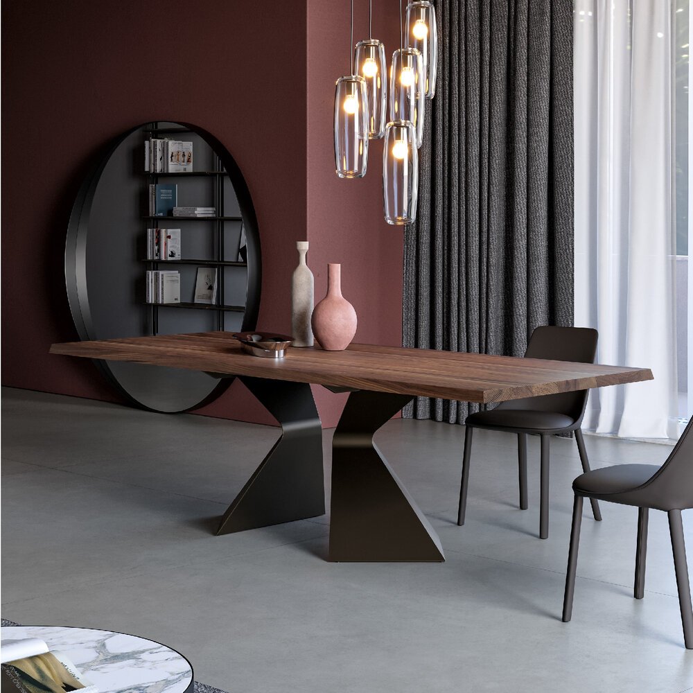 Eğimli ve güçlü baza profili, tasarıma dinamik bir kimlik kazandırarak mekânın odak noktası haline gelir. Zengin yüzey ve malzeme seçenekleri, tasarımın yalın çizgisini korurken kişiselleştirmeye olanak tanır. Tabla, dikdörtgen veya fıçı formunda, sabit ya da açılabilir versiyonlarıyla farklı ihtiyaçlara uyum sağlar. Açılabilir modeldeki yan uzantılar sayesinde yüzey kolayca büyütülürken sağlamlık ve estetik dengeden ödün verilmez.