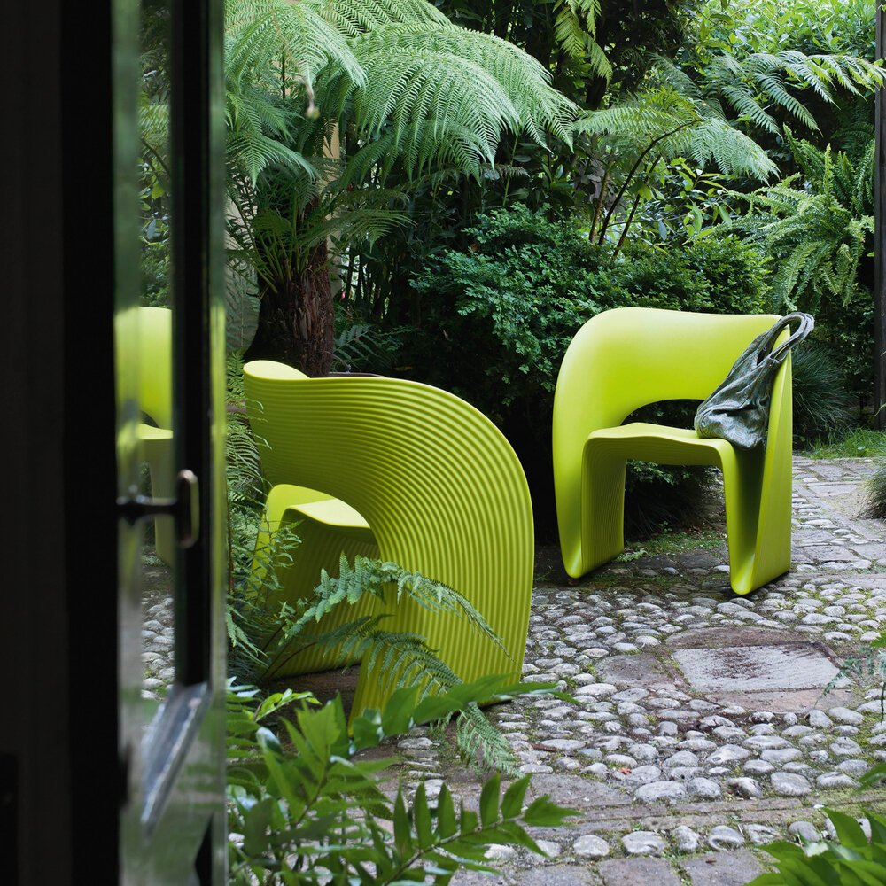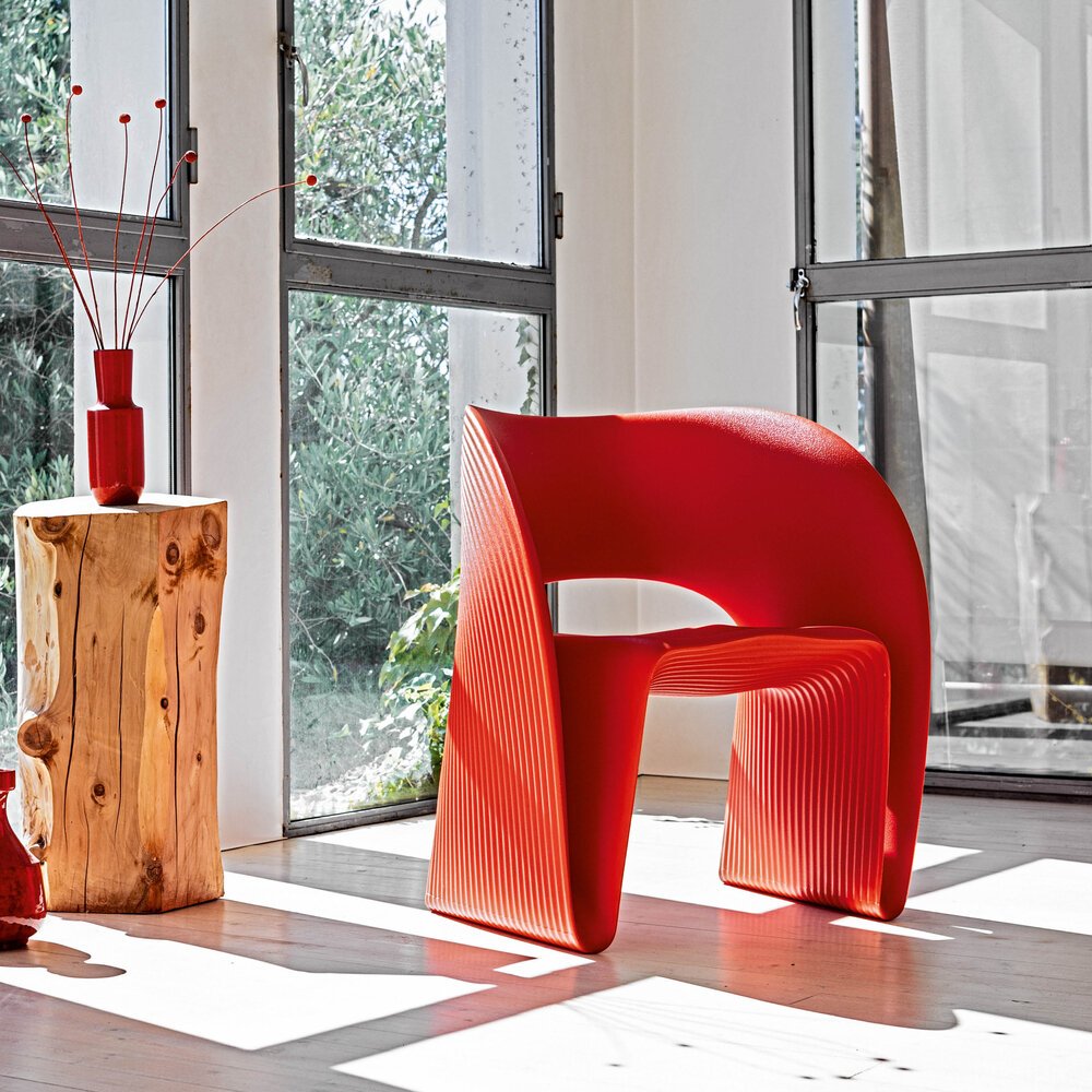 Raviolo, Patricia Urquiola’nın Magis için tasarladığı, enerjik formu ve kıvrımlı hatlarıyla öne çıkan bir tasarım koltuğudur. Tek parça döner kalıpla üretilen yapısı, adeta bir heykel gibi görünürken konforlu bir oturma deneyimi sunar. Hem iç hem dış mekânlarda kullanılabilir; cesur formu ve renk seçenekleriyle bulunduğu ortama karakter ve neşe katar.