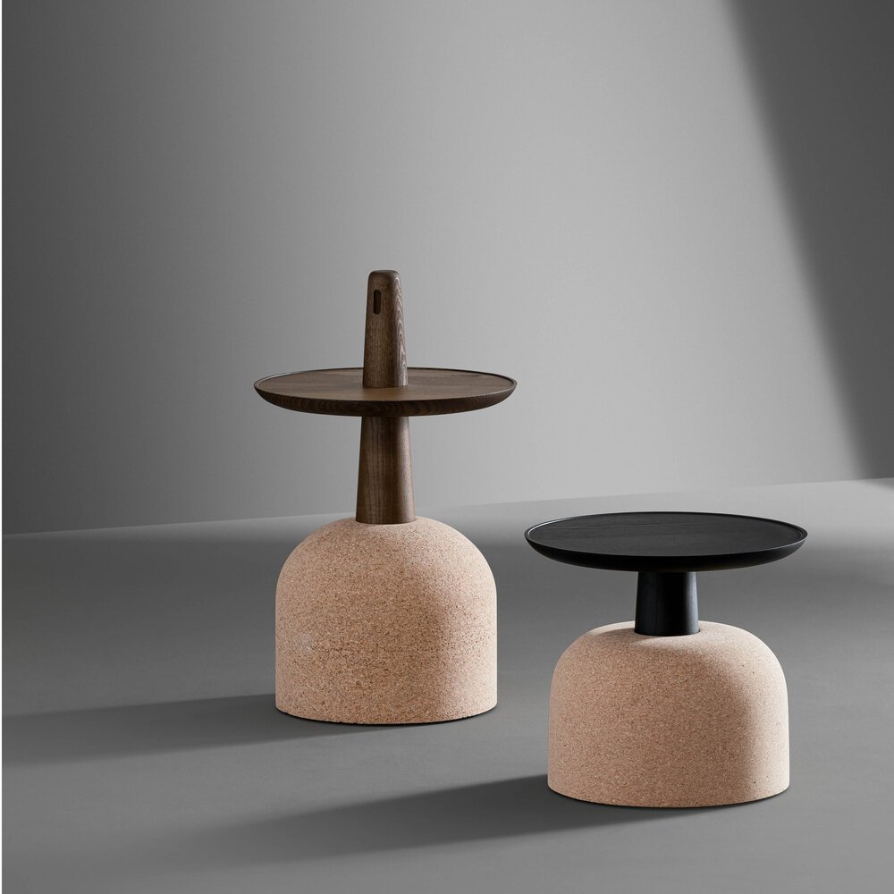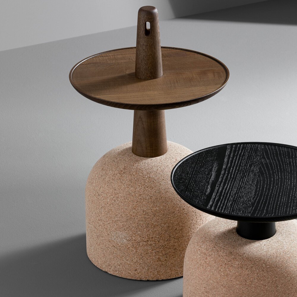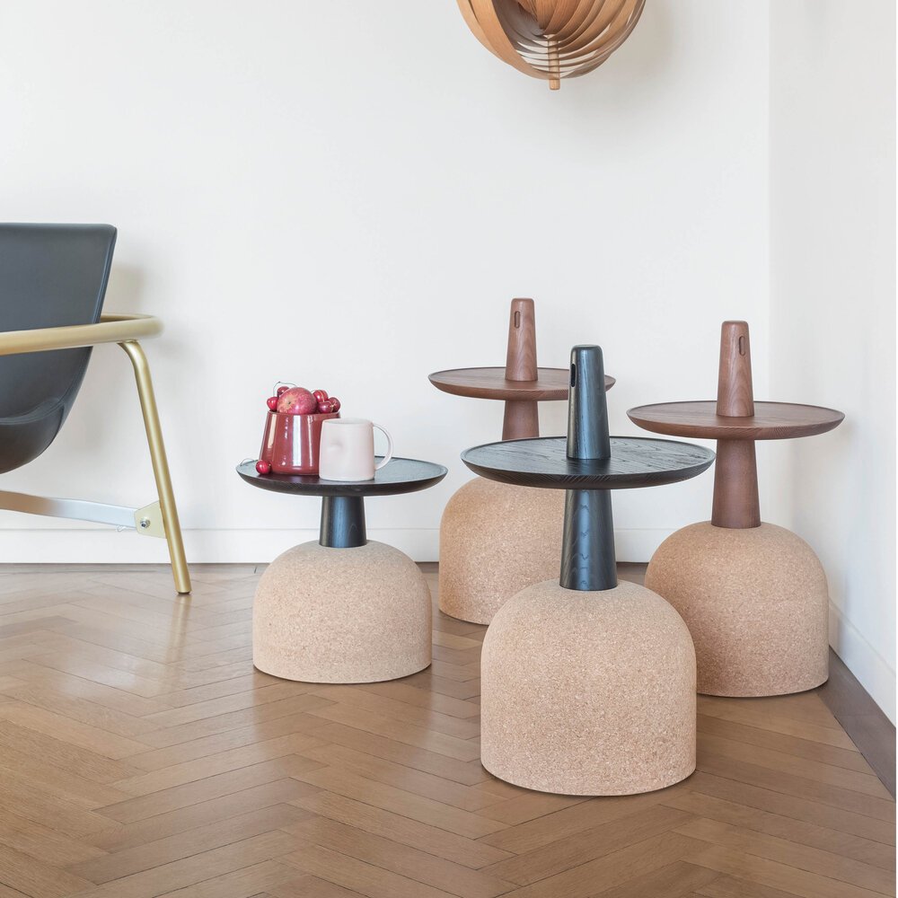 Assemblage sehpalar, mantar ve masif ahşabı beklenmedik bir dengede buluşturarak heykelsi bir zarafet sunar. İki farklı yükseklik seçeneğiyle yaşam alanlarına doğal ve çağdaş bir dokunuş katar.