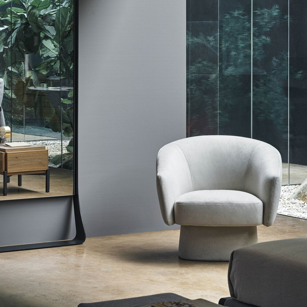 Bruno, yalın çizgileriyle tasarım geleneğine gönderme yapan bir berjer. Geniş dolgusu ve yumuşak hatları konforlu bir görünüm sunarken, kolçak ve sırtlığın tek hat üzerinde birleşmesi malzeme ve kontrastlarla güçlü bir etki yaratıyor. Tamamen çıkarılabilir döşeme kumaş veya deri seçenekleriyle sunuluyor; ayrıca kapitone detaylı Bruno Ego versiyonu da mevcut. Taban için iki seçenek var: kapalı ve döşemeli versiyon ya da ince metal ayaklı model.