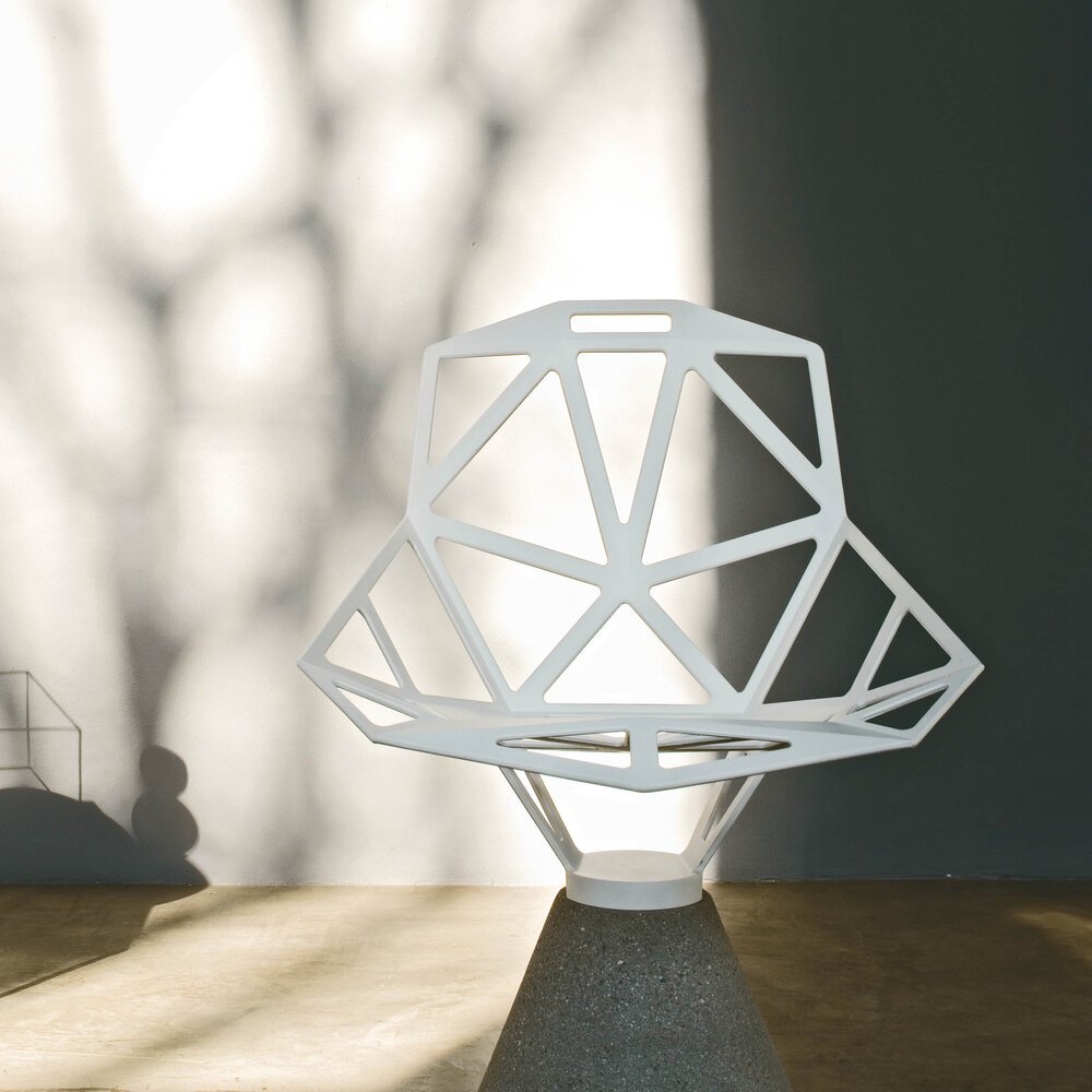 Chair_One, Konstantin Grcic’in Magis için yarattığı yenilikçi bir tasarım ikonudur. Dökme alüminyumdan üretilen geometrik gövdesi, mimari bir yapı hissi verirken güçlü bir görsel denge sunar. Dış mekân kullanımına uygun dayanıklılığıyla kamusal alanlardan modern evlere kadar geniş bir kullanım alanı yaratır.