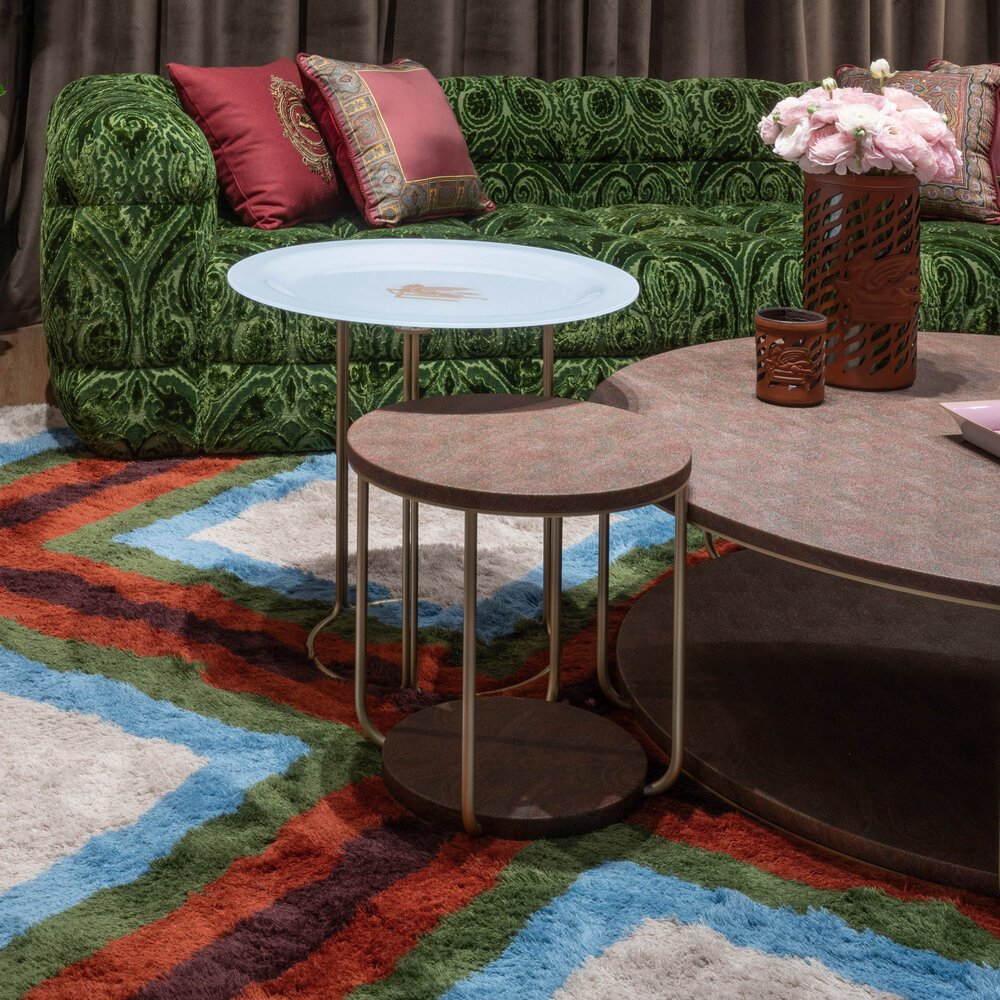 Double, ince metal ayakları ve çift işlevli yüzeyiyle yaşam alanına hafif ama güçlü Etro Home Interiors'ın şık dokusunu getiriyor.