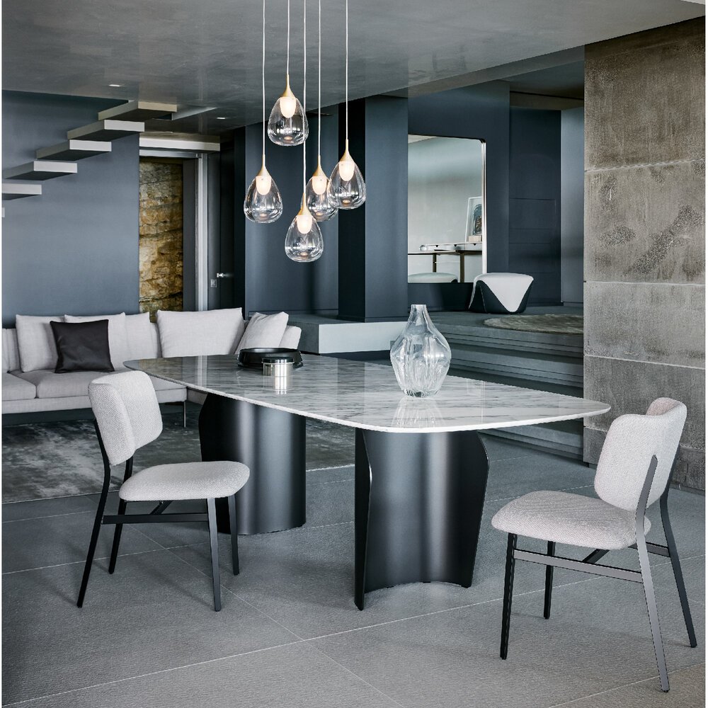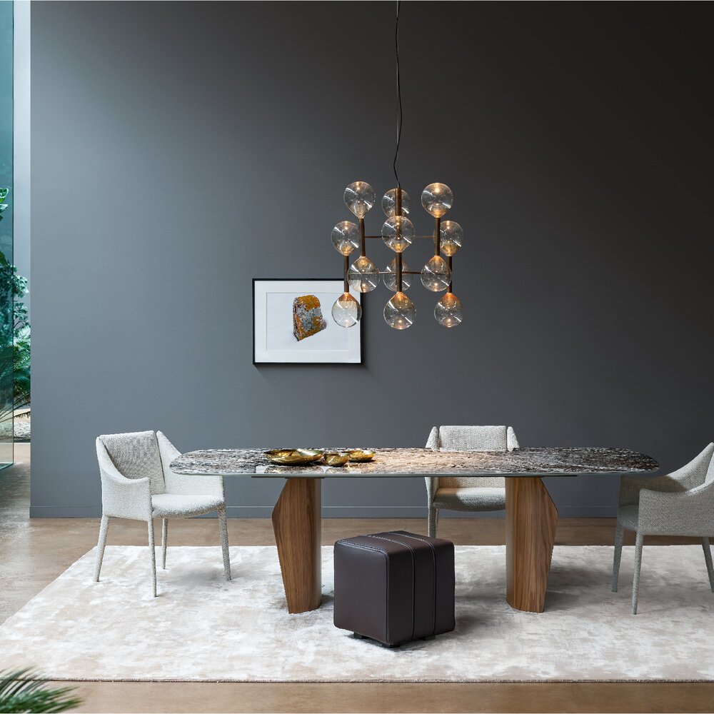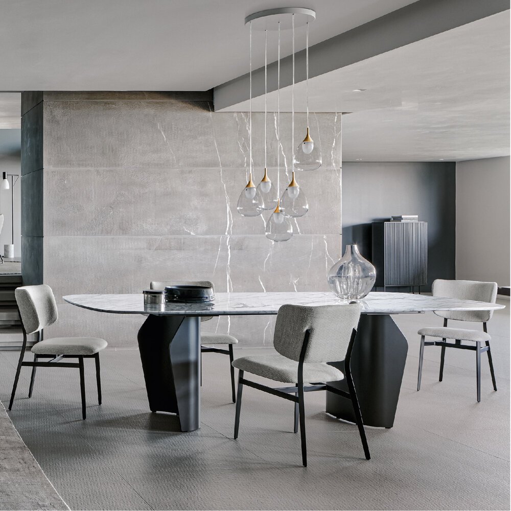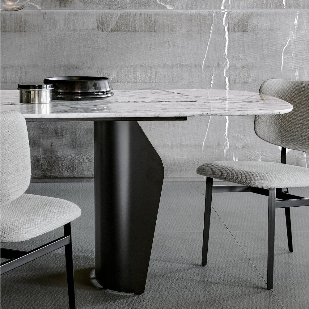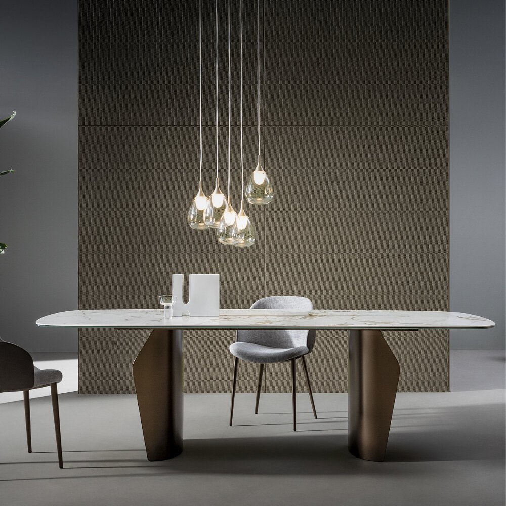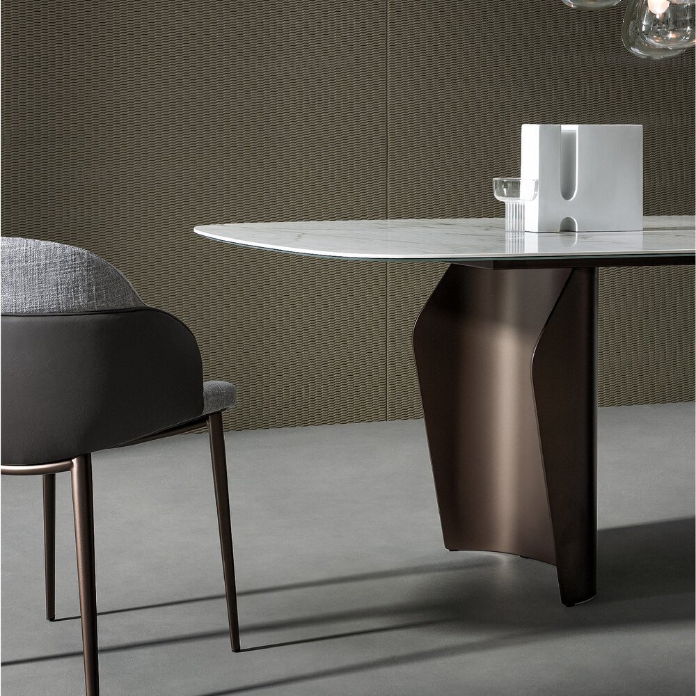 Flame masa, uyumlu hatları ve hafif, akıcı formuyla öne çıkar. İki parçalı baza sayesinde tabla havada süzülür gibi görünürken alan kullanımı da en iyi şekilde sağlanır. Ahşap, seramik ve mermer tabla seçenekleri ile metal veya ahşap baza alternatifleri sunan Flame, form ve işlevi kusursuz biçimde buluşturur.