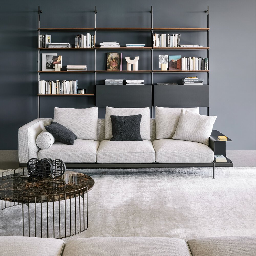 Phil, zarif çizgileri ve hafif yapısıyla geniş oturum konforunu bir araya getiren sofistike bir kanepedir. Minderlerdeki kontrast ya da ton-üstü-ton seçilebilen grosgrain şerit detayı, tasarımın yalın çizgilerini öne çıkarır. Deri tablalar, kolçaklar ve dergilik gibi detaylarla kişiselleştirilebilen bu koleksiyon, farklı yaşam tarzlarına uyum sağlar. “Casual” (aralıklı minderler) ve “Linear” (yan yana minderler) seçenekleriyle Phil, hem esnek hem de zamansız bir şıklık sunar.