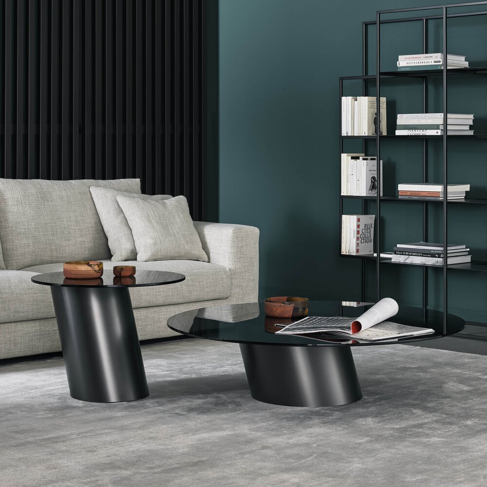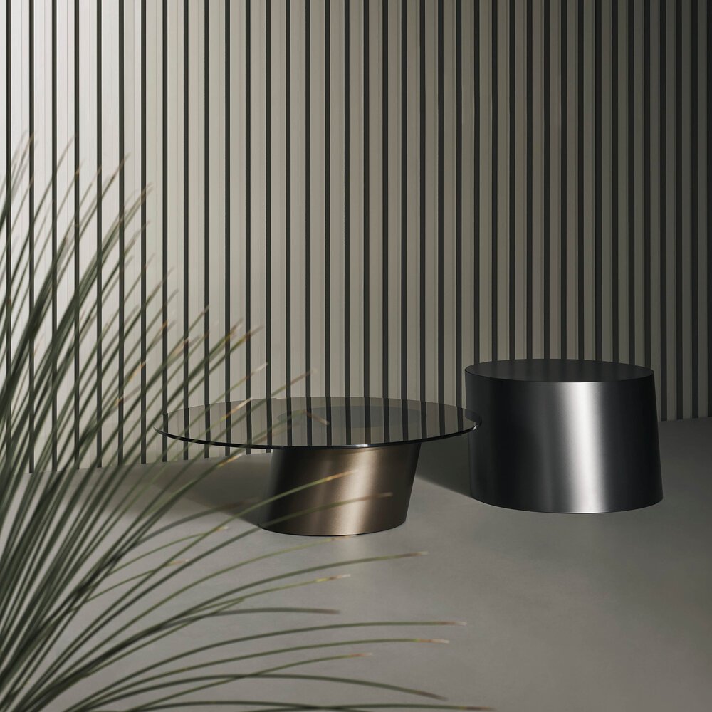 Mauro Lipparini’nin Pisa sehpası, ünlü kuleyi anımsatan eğimli duran formuyla dikkat çeker. Cam, mermer, seramik veya metal yüzey seçenekleriyle her mekâna güçlü bir karakter katar.