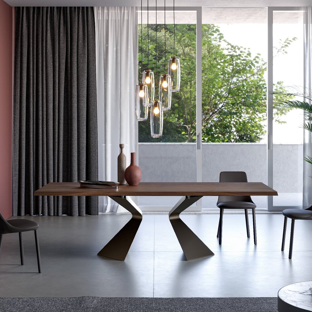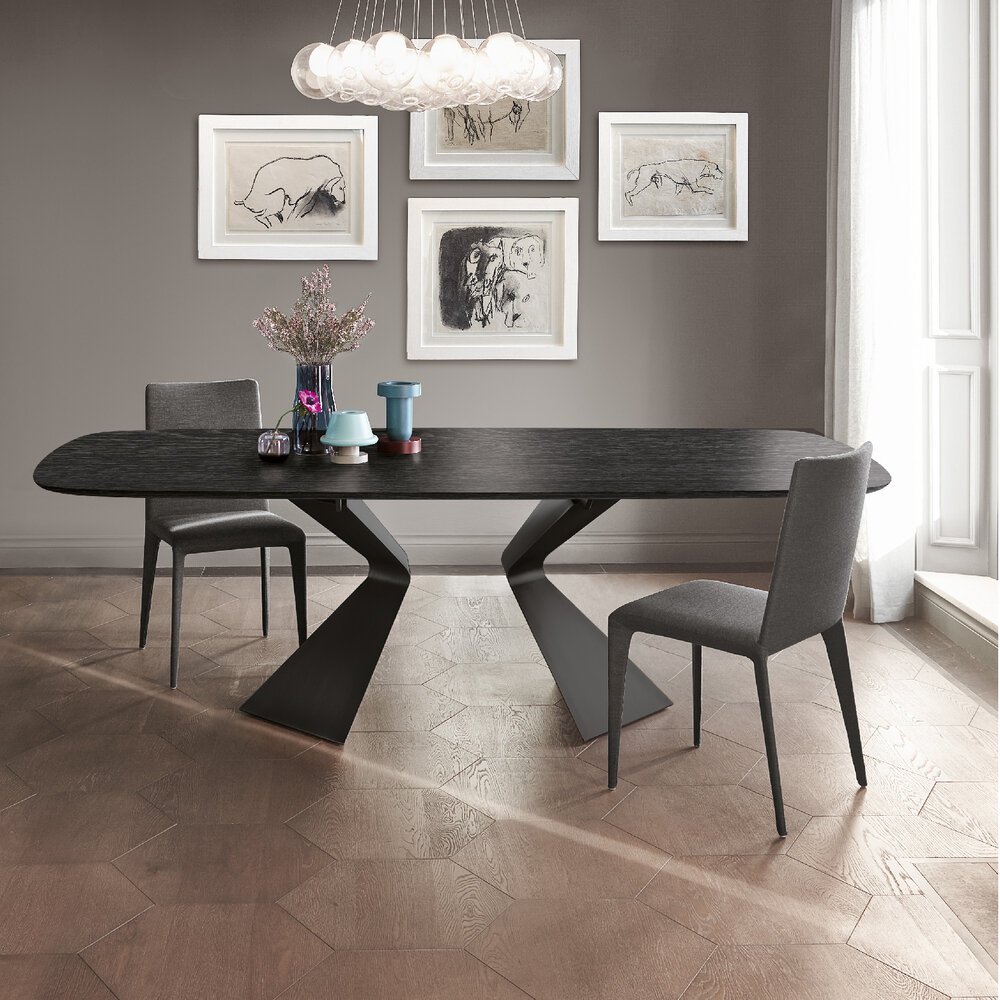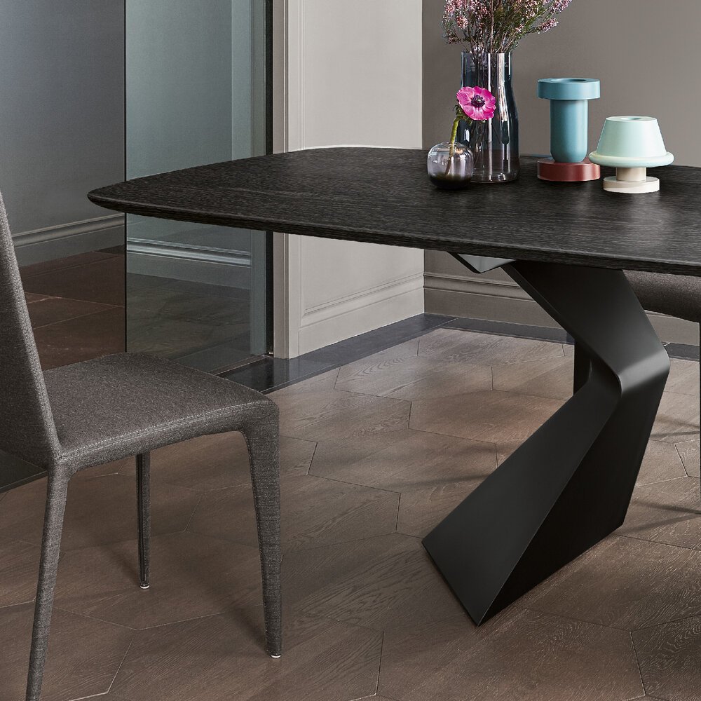 Eğimli ve güçlü baza profili, tasarıma dinamik bir kimlik kazandırarak mekânın odak noktası haline gelir. Zengin yüzey ve malzeme seçenekleri, tasarımın yalın çizgisini korurken kişiselleştirmeye olanak tanır. Tabla, dikdörtgen veya fıçı formunda, sabit ya da açılabilir versiyonlarıyla farklı ihtiyaçlara uyum sağlar. Açılabilir modeldeki yan uzantılar sayesinde yüzey kolayca büyütülürken sağlamlık ve estetik dengeden ödün verilmez.