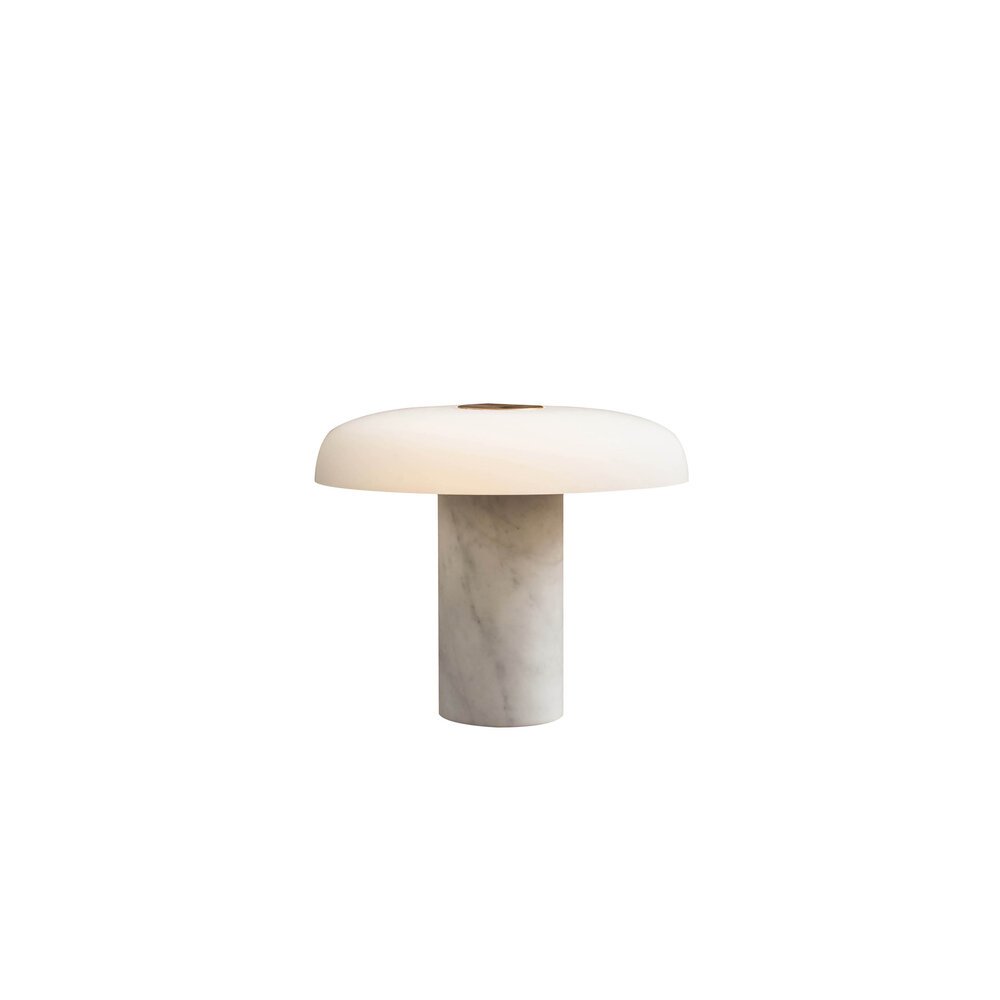Işığın formu, mermerin dengesiyle buluşuyor. Buratti kardeşlerin Tropico tasarımı, opal üfleme cam ve mermer gövdenin zarif birleşimiyle ışığı toplar, yansıtır ve mekâna yayar. Doğal taşın ağırlığıyla camın hafifliğini birleştiren bu parça, sade ama etkileyici bir denge yaratır.