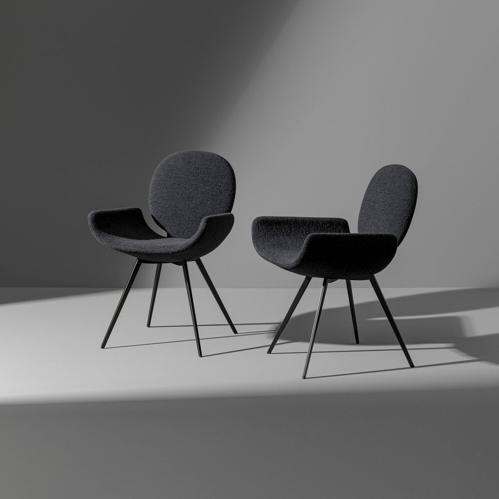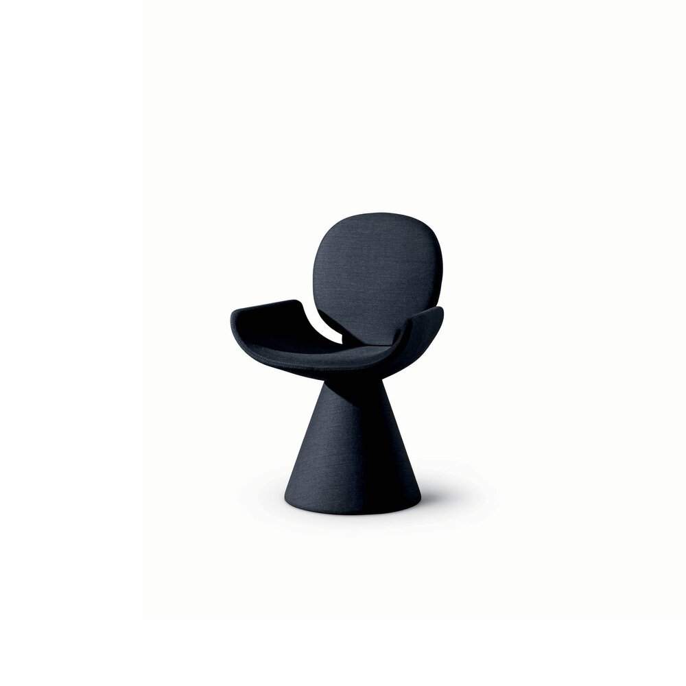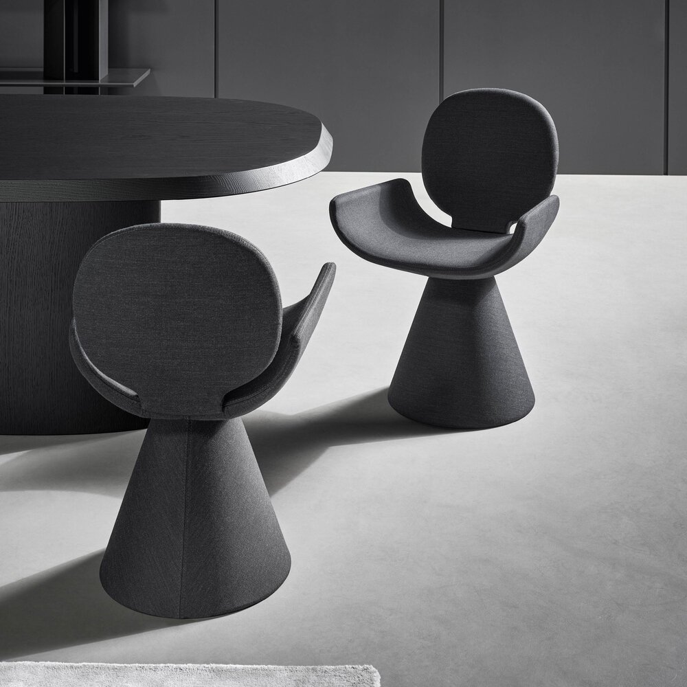 Fabrice Berrux tasarımı Youpi sandalye, davetkâr siluetiyle konforlu bir kucaklamayı andırır. Kumaş veya deriyle tamamen kaplanan yuvarlak sırtlık ve geniş oturma alanı, konik taban üzerinde zarif bir bütünlük oluşturur. Hafif ve şık tasarımıyla öne çıkan Youpi, ayrıca dört metal ayaklı versiyonuyla da sunulmaktadır.